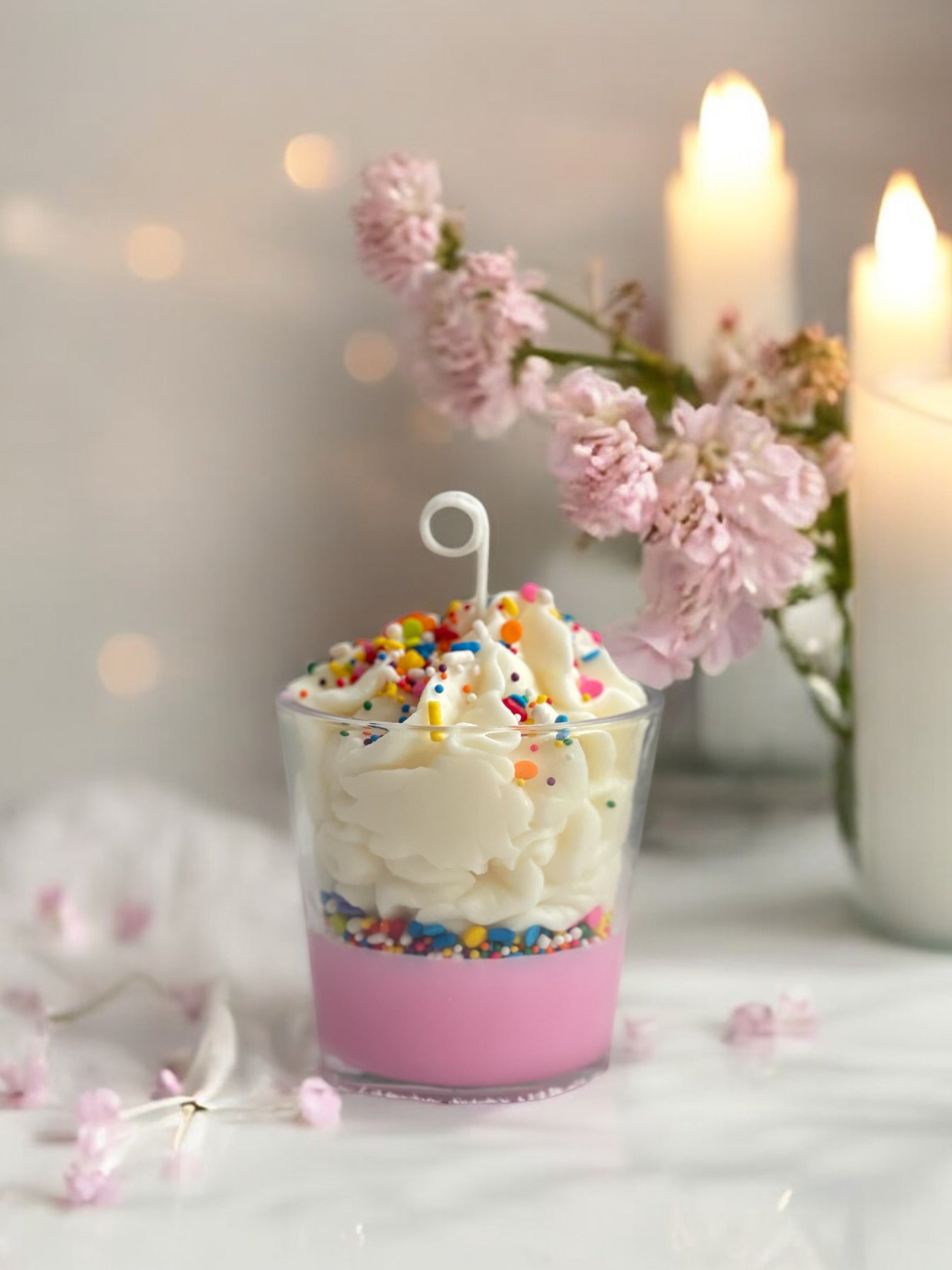 Each one is hand-poured and topped with colorful wax sprinkles to give it that celebration vibe — but it’s all 100% soy wax.
